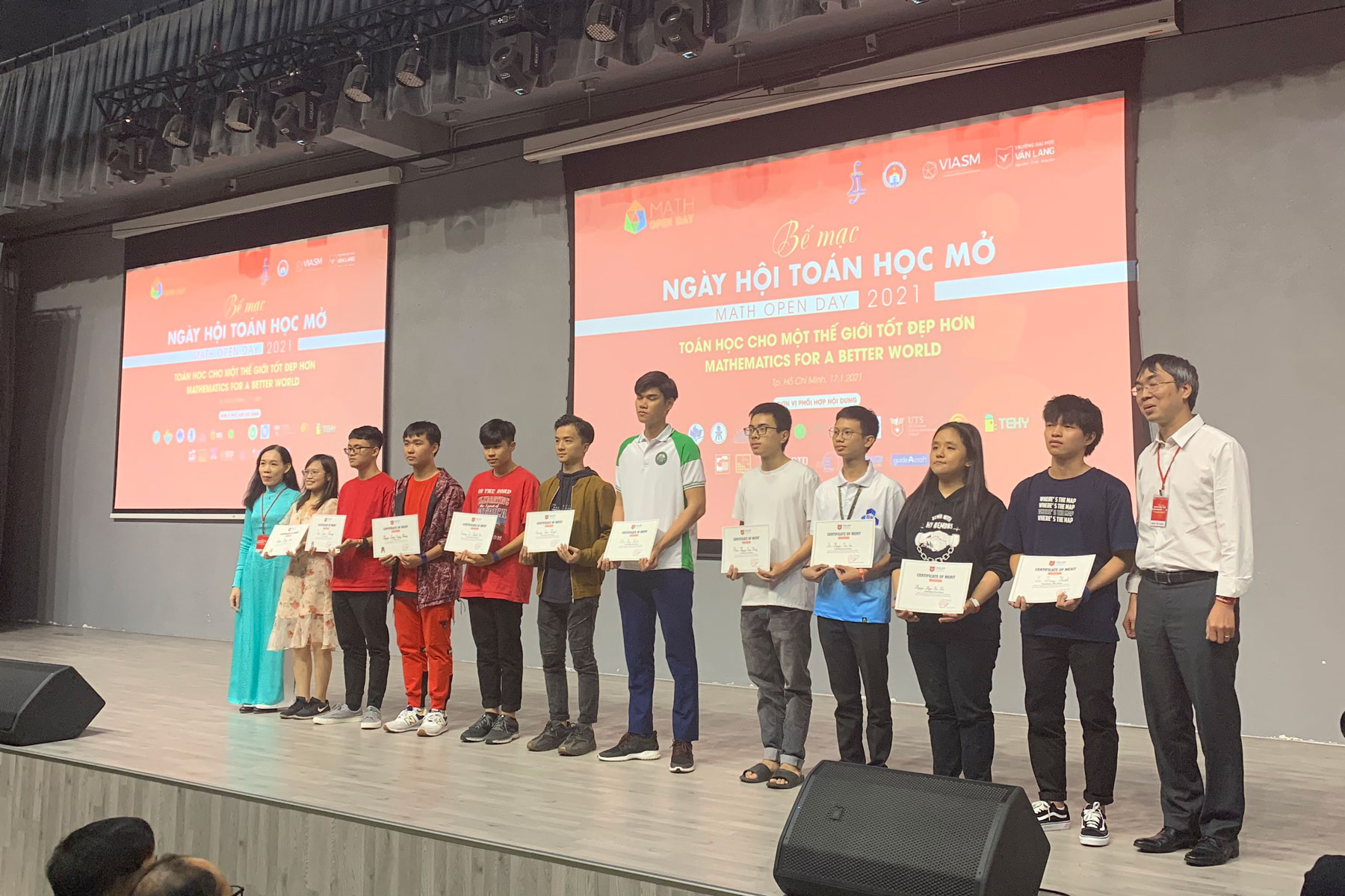 – Ngày hội Toán học mở - Ngày hội Thể thao trí tuệ Văn Lang tại TP. Hồ Chí Minh năm 2021 được tổ chức tại Cơ sở 3 Trường ĐH Văn Lang, với sự tham dự của Ông Nguyễn Văn Hiếu – Bí thư Đảng ủy, Phó giám đốc Sở Giáo dục và Đào tạo Tp.HCM; PGS. TS. Lê Minh Hà - Giám đốc Điều hành VIASM; TS. Trịnh Thị Thúy Giang - Phó Giám đốc VIASM; TS. Nguyễn Cao Trí – Chủ tịch Hội đồng Trường Đại học Văn Lang; PGS.TS. Trần Thị Mỹ Diệu – Hiệu trưởng Trường Đại học Văn Lang; ThS. Nguyễn Thị Ngọc Lan – Hiệu trưởng Trường Quốc tế Nam Mỹ UTS, GS. TS. Nguyễn Xuân Hùng - Top 1% các nhà khoa học được trích dẫn nhiều nhất thế giới; TS. Nguyễn Phụ Hoàng Lân - Trường Đại học Khoa học Tự nhiên, ĐHQG Hà Nội; Ông Hoàng Thiên - Trưởng ban Trọng tài Liên đoàn Cờ thành phố Hồ Chí Minh; sự tham dự trực tuyến của GS. Ngô Bảo Châu và Đại Kiện tướng Cờ Vua thế giới Lê Quang Liêm cùng đại diện các trường đại học, trường THPT, doanh nghiệp và gần 3.000 học sinh – sinh viên trên địa bàn TP.HCM.